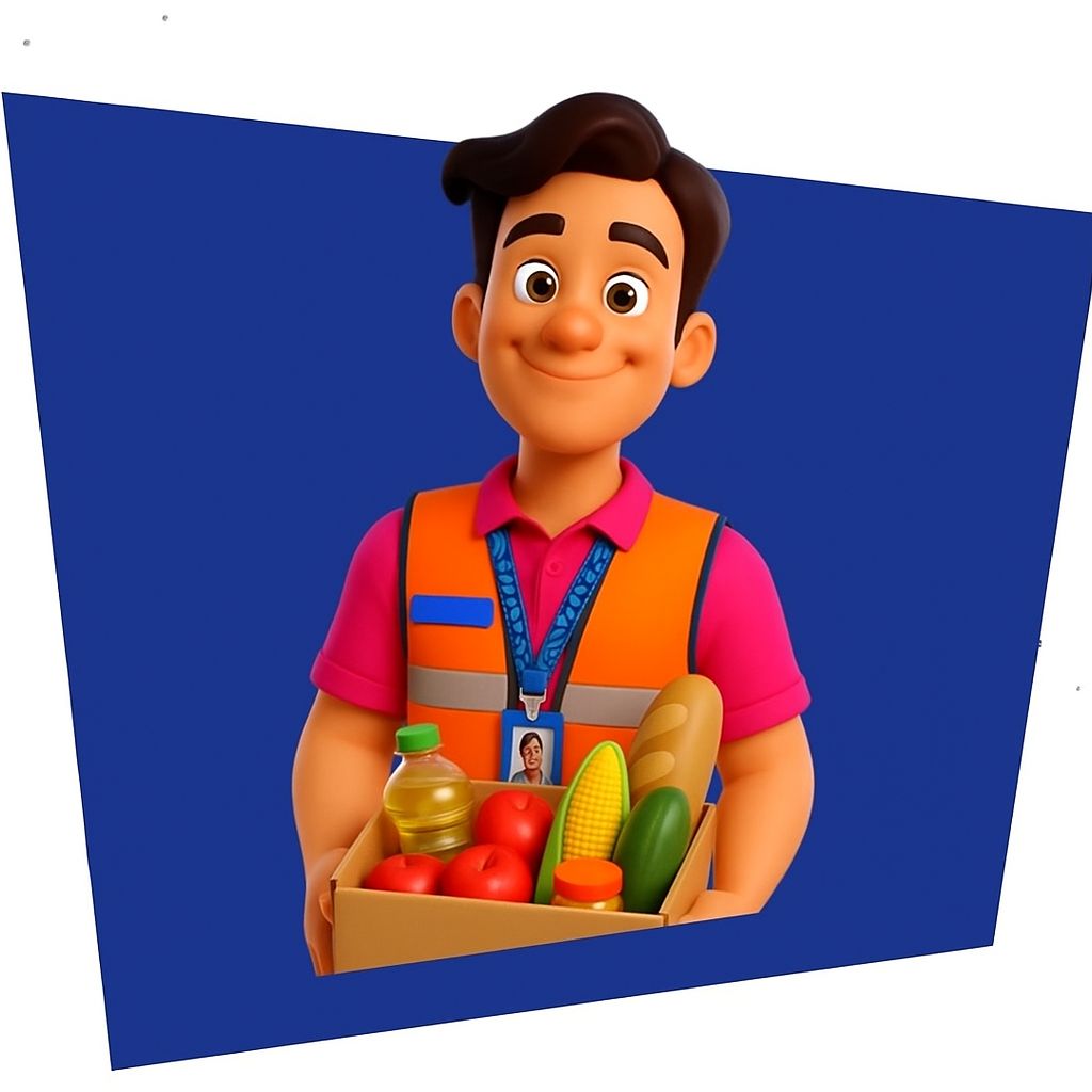 Entregarás compras de supermercado a domicilio. Tu misión: llegar a tiempo, cuidar el pedido y tratar al cliente con amabilidad para que cada familia confíe en ti.🙋🏻